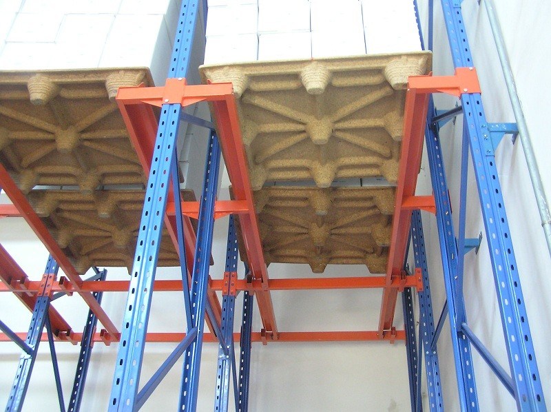 Drive-in sistem racking pallet, itu adalah solusi yang baik untuk tunggal kargo kategori curah menyimpan di gudang, berkaitan dengan pemanfaatan tinggi dari tabungan lebih dari 30% ruang; diakui oleh dingin kamar, susu, makanan, tembakau gudang penyimpanan industri;
