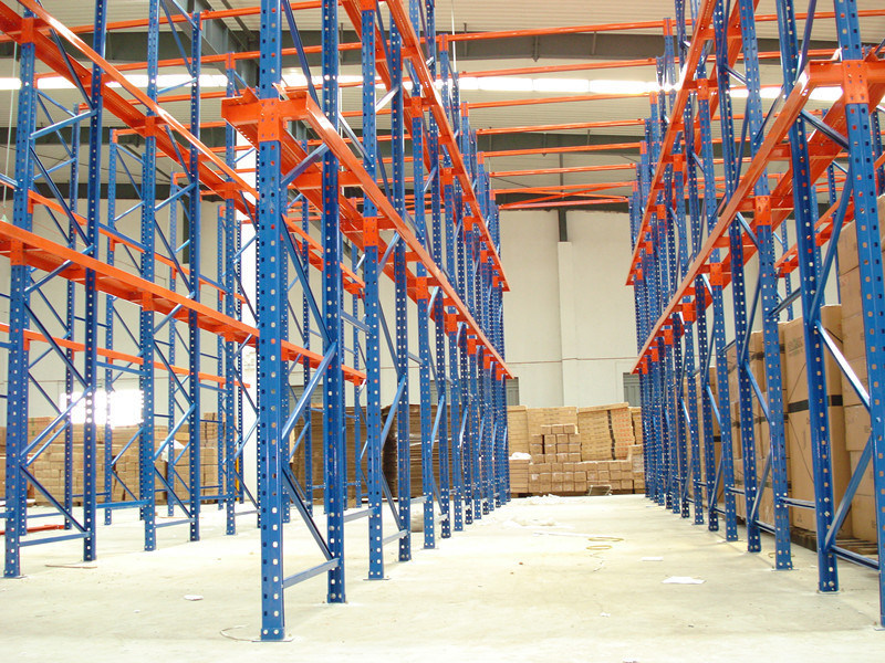 드라이브인 선반은 적재용 트럭이 1개의 측에서 줍거나 깔판을 떠나기 위하여 선반에 들어가는 것을 허용합니다. 이것은 깔판이 지속적인 가로장에 뒤에 미끄러지기 수 있기 때문에 행해집니다. 포크리프트는 접근 깔판에 선반으로 2개 이상 깊은 몹니다. 당신은 당신 시설의 크기에 의해 특정한 만을 위한 저장의 깊이에서 제한됩니다. 드라이브인 선반은 이용되는 방법 때문에 선택적인 선반 보다는 남용 더에 전형적으로 지배를 받습니다, 그래서 선반 완전성과 힘은 중요한 요인입니다. 냉각기 또는 냉장고 신청을 위한 이상적인 선반입니다.